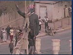 ![]() De la désinfo à son meilleur... La preuve ! La scène à droite de la photo ressemble-t-elle à la chute du mur de Berlin ? L'endroit encerclé en rouge est le petit lieu ou des Marines US, la Presse et un petit nombre d'Irakiens se rassemblèrent pour tirer et abattre la statue de Saddam Hussein. Tout au plus 150 personnes étaient impliqué. La Plaza était vide et en plus scellée par les Marines. L'incisent survint juste à l'opposé du Palestine Hotel où les médias internationaux étaient basés. Cet événement a été méticuleusement monté de toute pièce comme dans un film hollywoodien. Les irakiens pro-américains impliqués étaient des membres du mouvement des Forces de Milice pour la Ibération de l'Irak de Ahmed Chalabi... récemment amenés par avion en Iraq par le Pentagone. Chalabi est un favori de Washington pour être à la tête du nouveau gouvernement. On a fait la promotion dans les médias du "Renversement de la statue de Saddan Hussein" comme un soulèvement de révolte de masse des irakiens contre le régime de Saddam. ![]() Photo de gauche: Ahmed Chalabi et ses "Forces de Libération de l'Irak" se sont envolé vers la ville du sud de Nasiriyah au frais du Pentagone, dimanche le 6 avril. Photo de droite: le même membre de la milice accueille les Marines américains au centre de Bagdad quelques minutes après que la statue de Saddam fut renversée le 9 avril. Coïncidence ? Pauvre peuple irakiens. Ils n'ont pas finit de vivre le chaos et la misère des forces de l'ordre mondial. |
